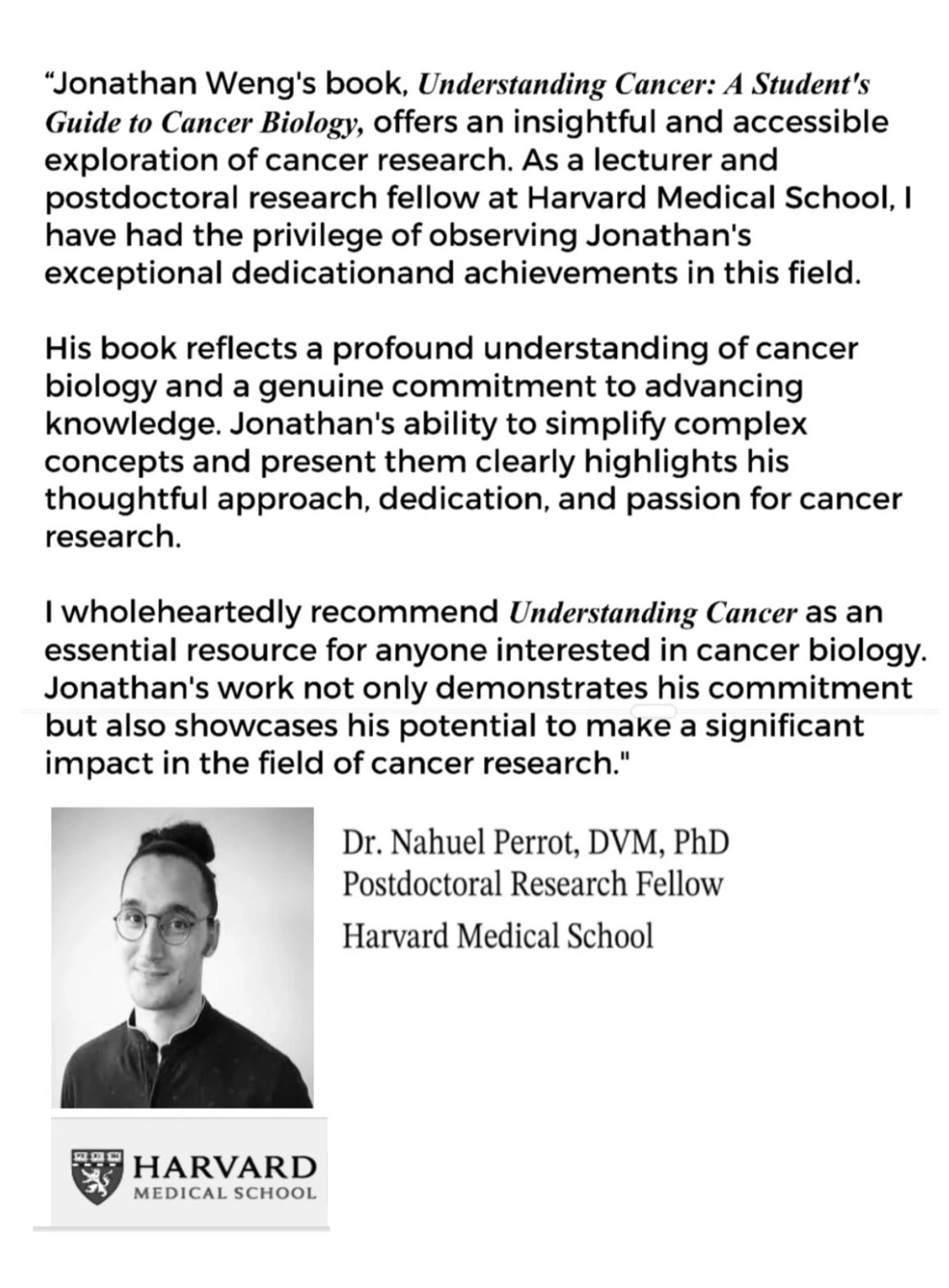 “Jonathan Weng is a driven and insightful student whose deep understanding of cancer research, clear communication, and dedication to advancing science reflect his strong potential for making impactful contributions to biomedical science."