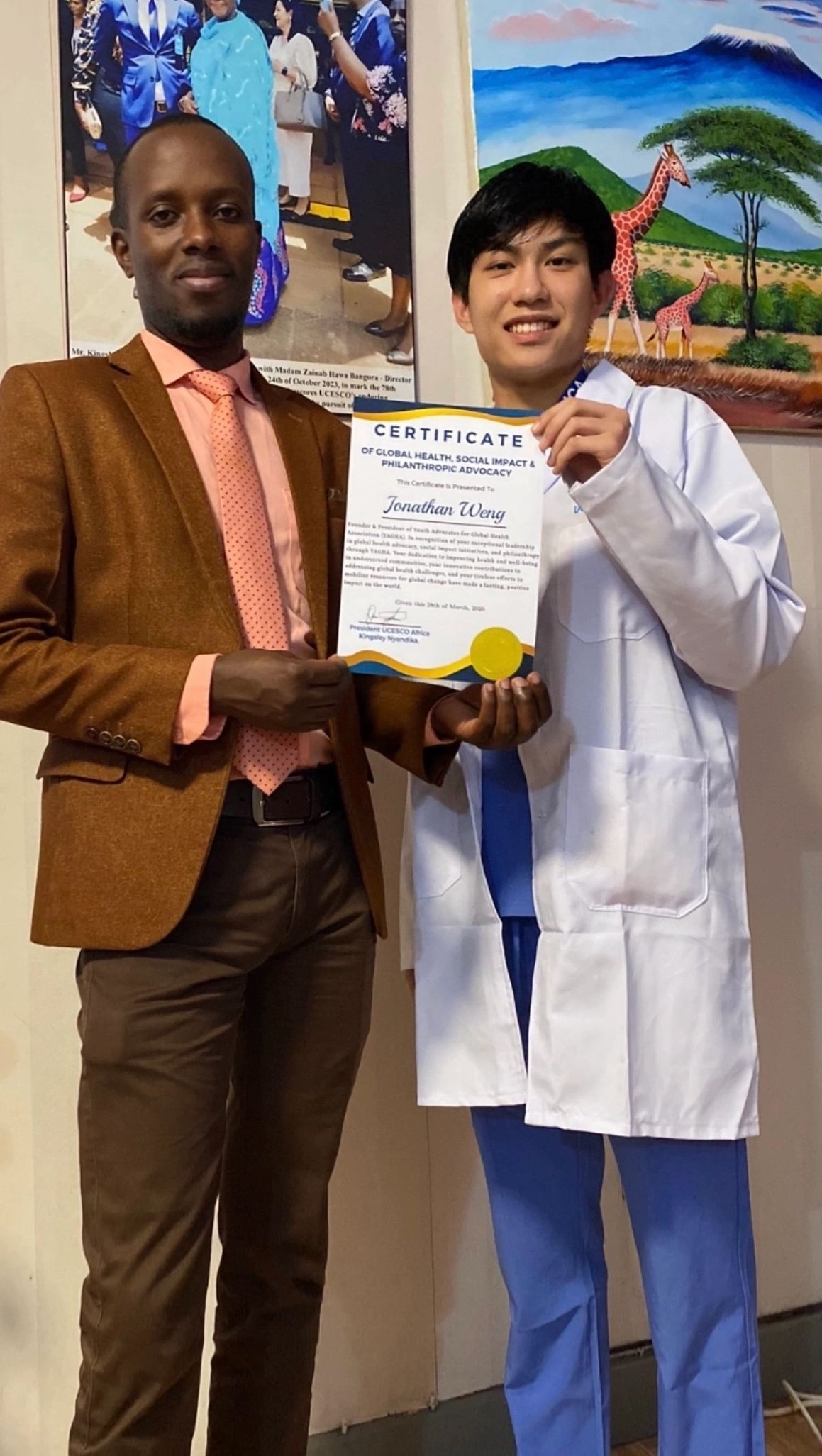 "Jonathan is an outstanding young leader whose passion for humanitarian work, public health, and community service inspires others. Despite his youth, he shows empathy and dedication to making a positive impact globally.”