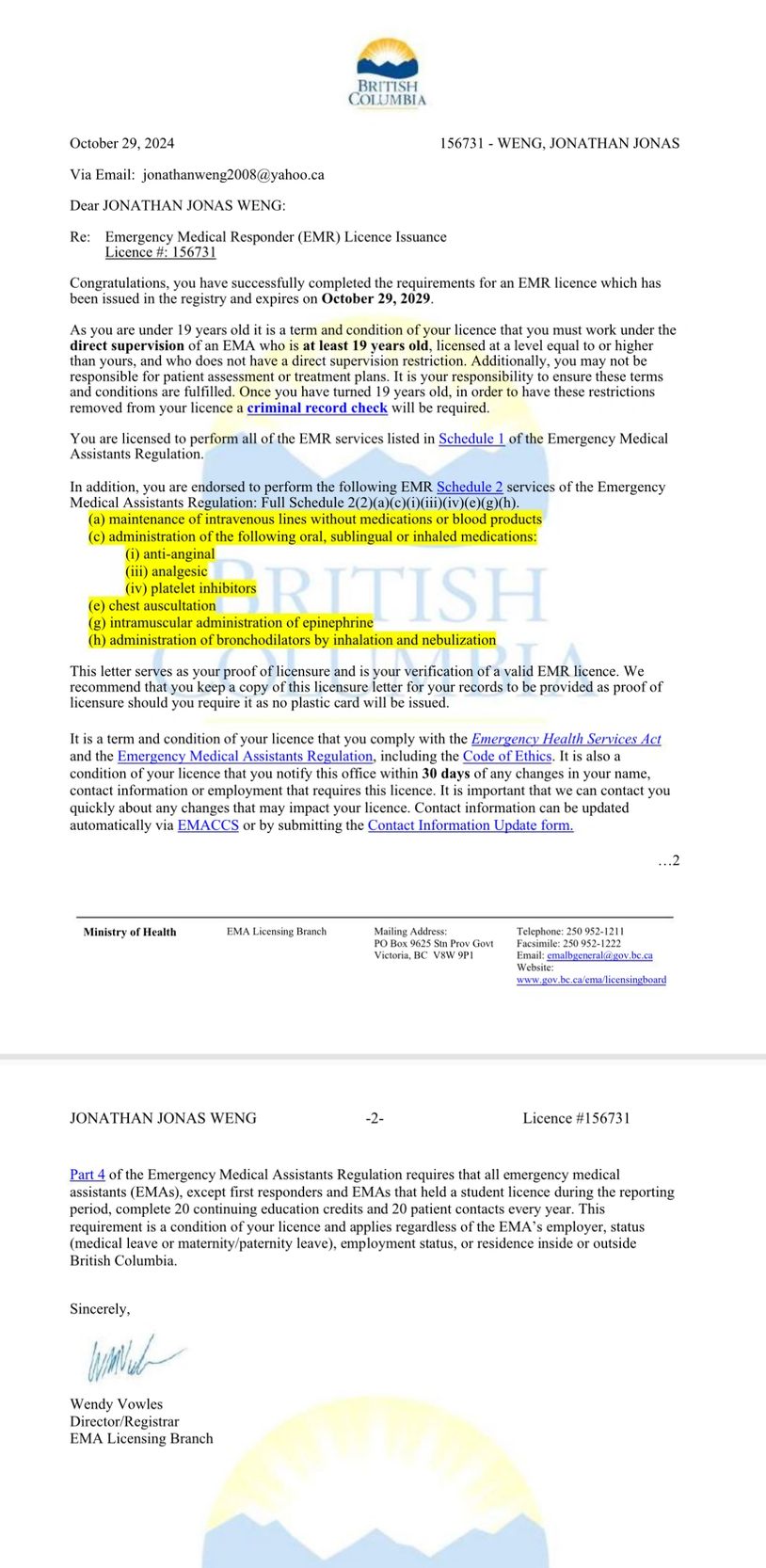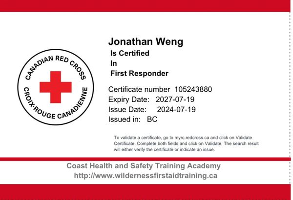 First Responder certificate issued in July, 2024