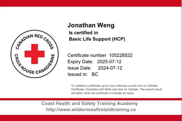Basic Life Support certificate issued in July2024