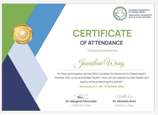 Certificate of participation for Global Health conference
