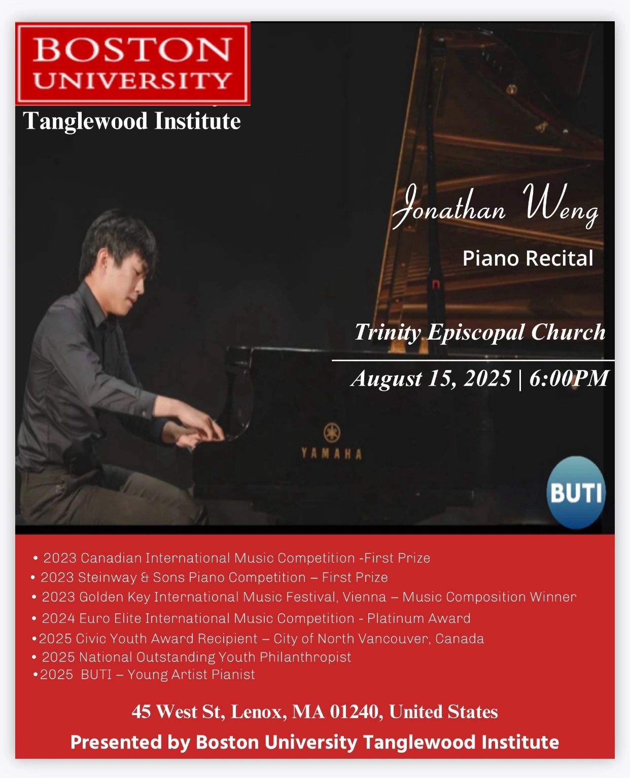 Boston University Tanglewood Institute (BUTI) Young Artists Piano Recital - Jonathan Weng, Piano