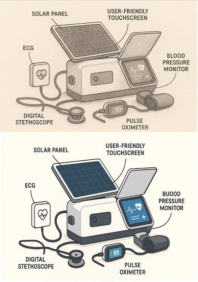 Modular Solar-Powered Telemedicine Device for Remote and Underserved Regions. A device designed to connect renewable energy, internet, and healthcare systems to improve medical access in remote or underserved communities, particularly in Africa.